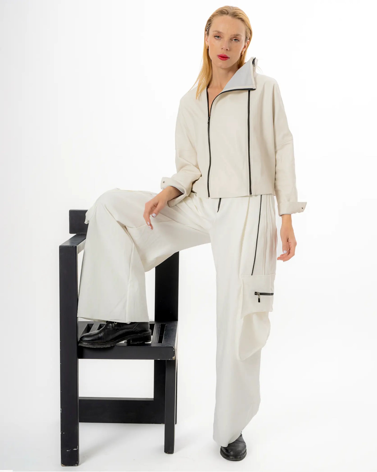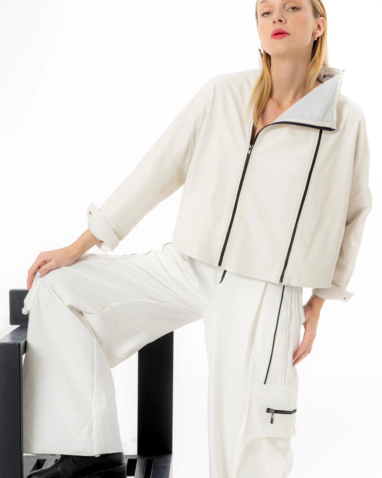 El corte es oversized, cómodo, ideal para quienes buscan una prenda que se adapte a un día activo sin perder el toque chic. Perfecta para combinar con jeans, joggers o incluso faldas, esta chamarra se vuelve una pieza clave en cualquier guardarropa.