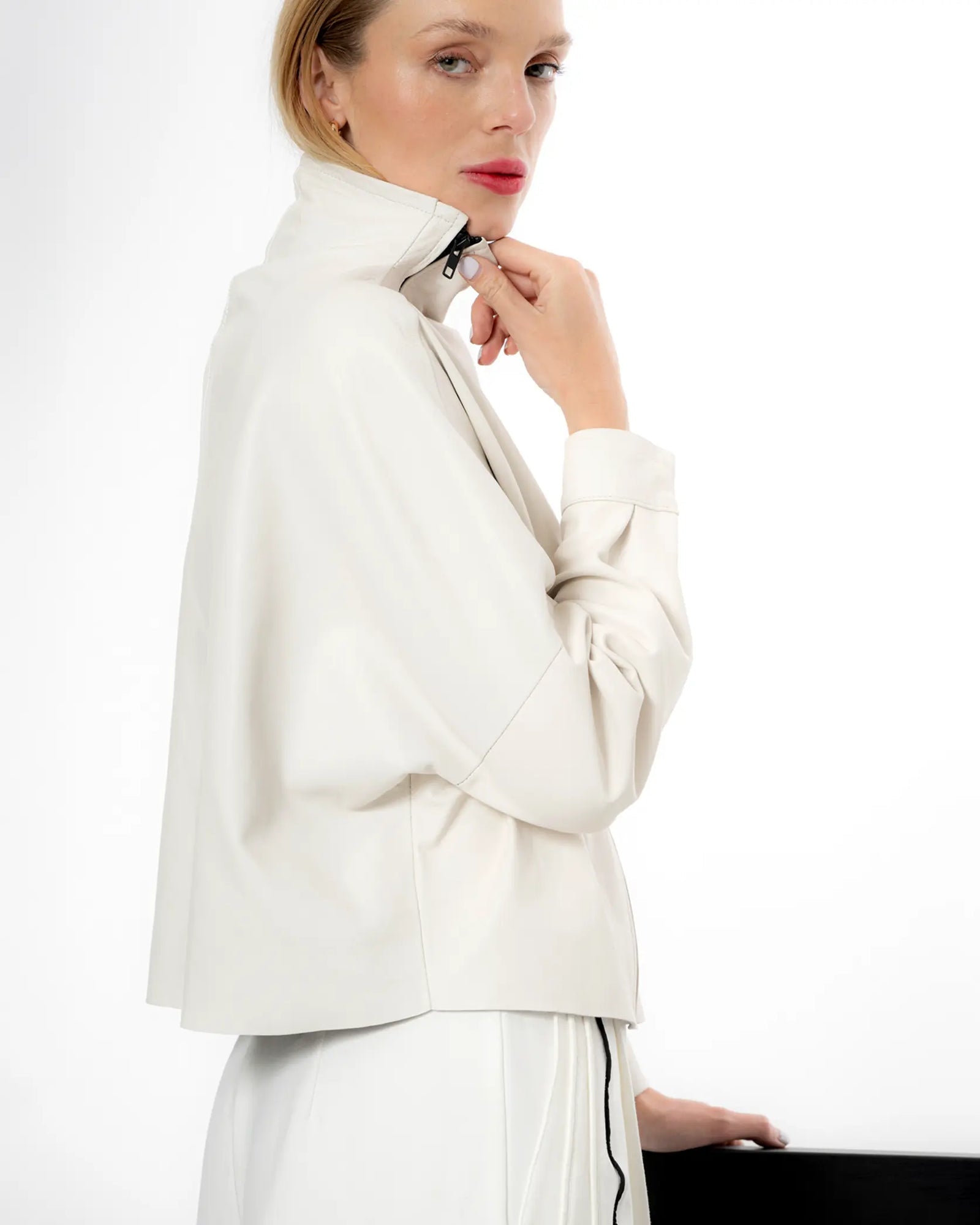 Esta chamarra de piel para mujer con doble cierre frontal negro es la mezcla perfecta entre estilo deportivo y elegancia urbana. Hecha con piel de cordero de alta calidad, su diseño limpio y estructurado se eleva con los dos cierres visibles al frente, que no solo agregan funcionalidad, sino también un aire athleisure contemporáneo.