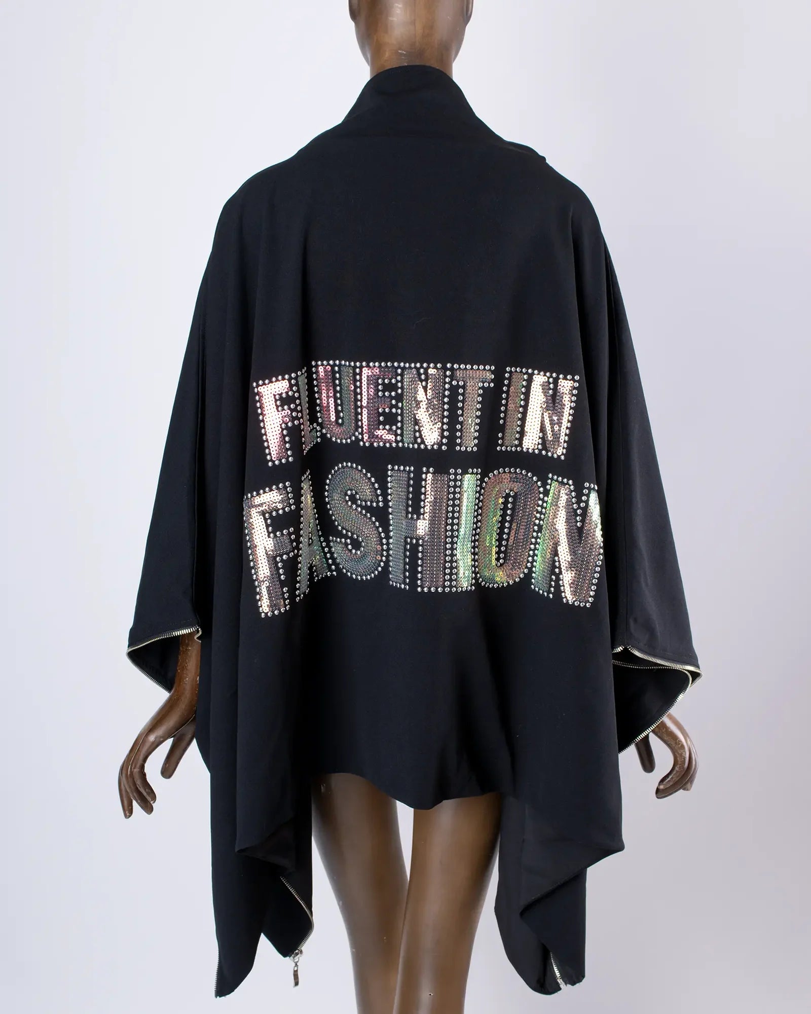 Descubre la pieza con la que atraerás todas las miradas: nuestra Capa Falda 'Fluent in Fashion' en tela crepe negra. Una prenda transformable diseñada para la mujer In-Diferente que domina el lenguaje de la moda con audacia y originalidad. Perfecta para quienes buscan versatilidad sin sacrificar un estilo impactante.