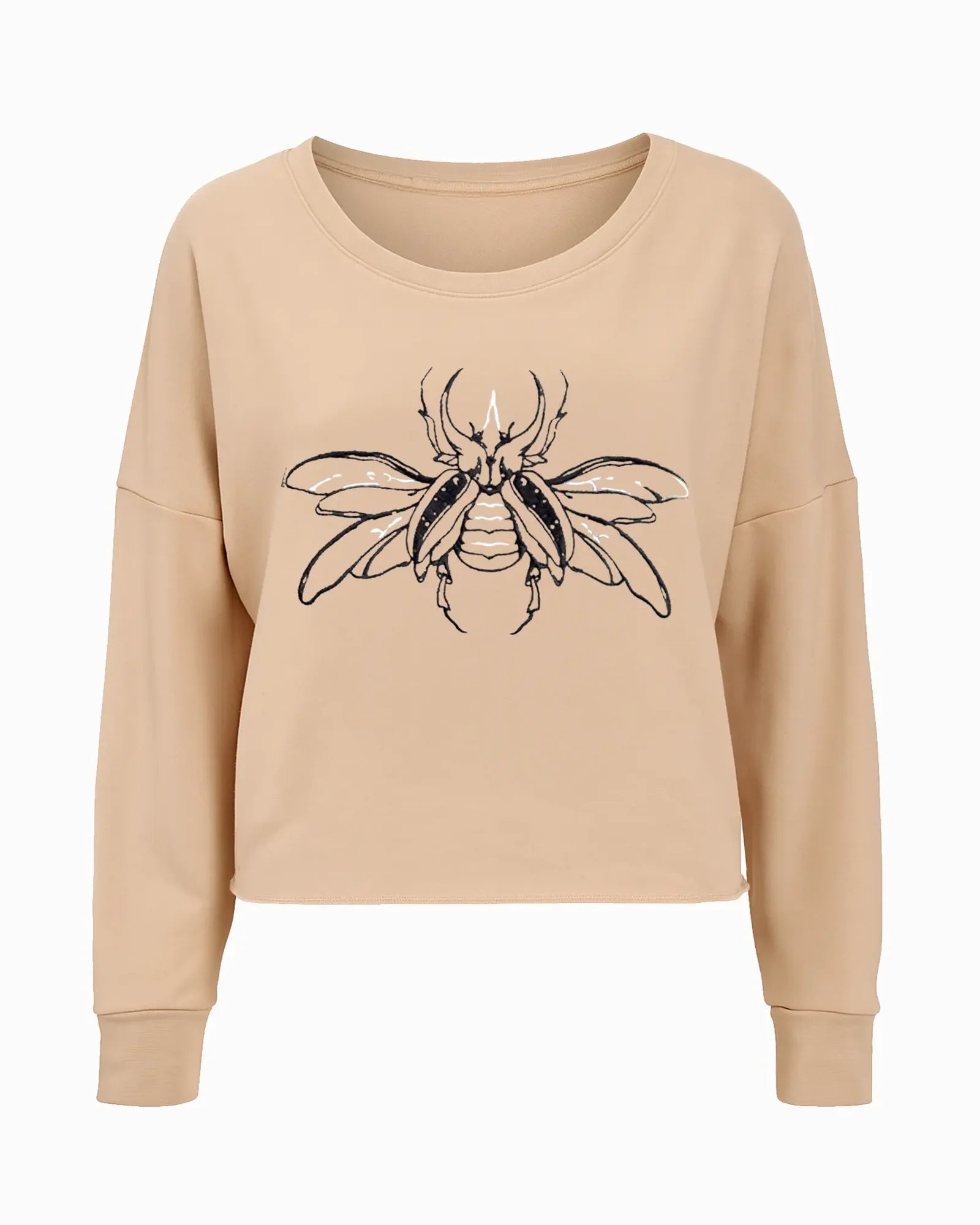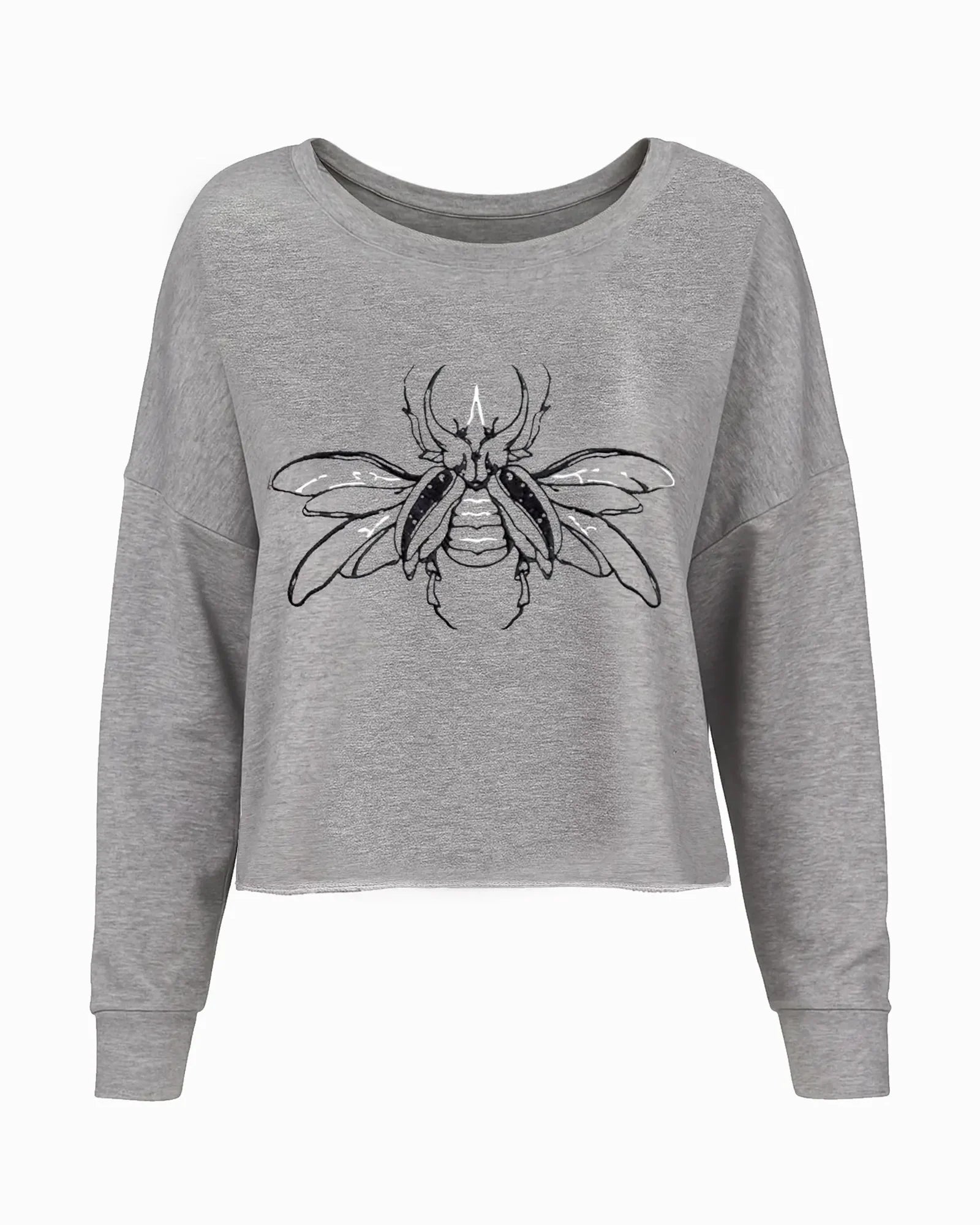 Esta Sweat Crop tiene un escarabajo bordado en negro con detalles en blanco en la parte frontal. El escarabajo es un símbolo ancestral de transformación, renovación y buena fortuna.